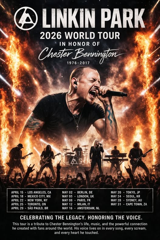 The world of rock music just felt a powerful emotional shockwave. After years of silence, rumors, and endless fan speculation, Linkin Park has officially announced a massive 2026 world tour dedicated to honoring their legendary frontman, Chester Bennington.